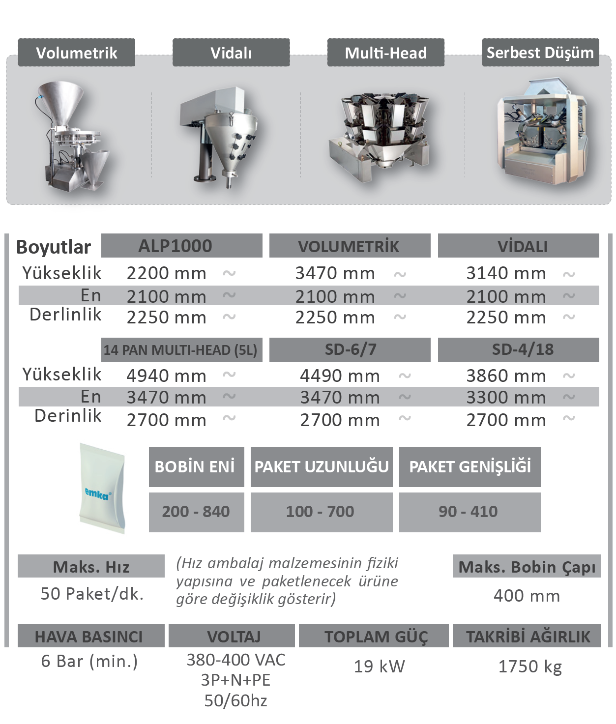 - Volimetrik Sistem, Vidalı Sistem, Lineer Terazili Sistem ve Çok kefeli (Multihead) Terazili Sistem uyumlu