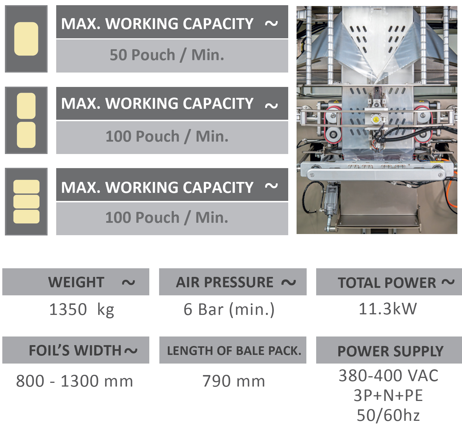 - Servo kontrollü tek veya çift sıra paket balyalama sistemi